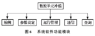 系統(tǒng)軟件結(jié)構(gòu)采用模塊化結(jié)構(gòu),共有5個(gè)功能模塊:系統(tǒng)開(kāi)機(jī)后進(jìn)入Windows界面雙擊“數(shù)控單元沖?!眻D標(biāo),即彈出應(yīng)用界面,可選擇功能模塊。系統(tǒng)軟件功能模塊圖如圖6所示。