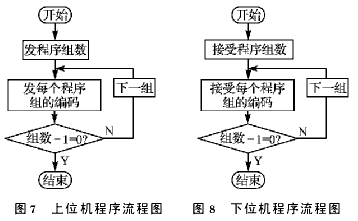 單片機(jī)的程序也采用模塊化結(jié)構(gòu),與上位機(jī)一樣共有5個(gè)功能模塊通過(guò)通信接口接受上位機(jī)的輸入指令,控制X,Y方向步進(jìn)電機(jī)的運(yùn)動(dòng)。也可以脫離上位機(jī)直接控制運(yùn)行。上位機(jī)通信程序流程圖,如圖7所示。下位機(jī)通信程序流程圖,如圖8所示。