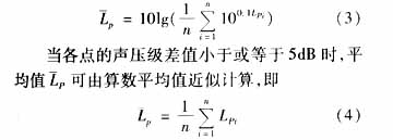2.3聲壓級(jí)的平均值 先測(cè)量若干點(diǎn)的聲壓級(jí),再求平均值,對(duì)應(yīng)式(1)求聲壓級(jí)的平均值
