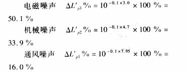3.2按噪聲構(gòu)成比例確定主要因素 根據(jù)上表的數(shù)據(jù),按式(5)計(jì)算,在電機(jī)噪聲聲壓級(jí)中