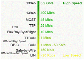 圖1:車載網(wǎng)絡(luò)系統(tǒng)及其速率