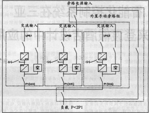 2)備份運(yùn)行UPS,使用多臺不停電裝置,具有備份功能,當(dāng)部分發(fā)生故障,其它正常部分向負(fù)荷供電,用于特別重要負(fù)荷。