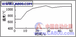 由圖6可以看出,待軋時,變結(jié)構(gòu)控制使加熱爐維持在700℃,在10s后得到軋鋼信號,切換到單回路控制,在流量給定下,溫度快速上升到950℃,然后平滑的切換到串級控制,利用串級控制較強的抗擾性,使溫度平滑的上升到1100℃,開始軋鋼。在23秒的時候,加熱爐在熱量損失的情況下,溫度的變化也很小,并且很快恢復(fù)軋鋼溫度,不影響正常軋鋼,快速性和抗擾性都比傳統(tǒng)的PID串級控制有了明顯的改善。