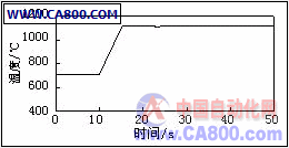 利用設(shè)計的變結(jié)構(gòu)智能調(diào)節(jié)器和傳統(tǒng)的PID調(diào)節(jié)器對包鋼軋鋼廠加熱爐分別進行調(diào)節(jié)控制試驗。待軋溫度700℃,軋鋼溫度1100℃,得到的溫度變化波形如圖5、圖6所示。