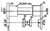 選用GWK/AT-Ⅱ數(shù)控系統(tǒng)。主運(yùn)動(dòng)方式和傳統(tǒng)機(jī)床一樣都要求有十分寬廣的變速范圍來保證加工時(shí)選擇合理的切速,從而獲得較高的生產(chǎn)率和表面質(zhì)量。根據(jù)原主軸箱變速的具體情況,有效地利用數(shù)控系統(tǒng)中提供的以編碼方式輸入的16種主軸變速功能S只將I軸上56和51及Ⅱ軸上的34和39兩個(gè)雙聯(lián)齒輪一分為二,在56和51上各裝DLM3—10遠(yuǎn)程控制電磁離合器,以達(dá)到在不停機(jī)的情況下,按系統(tǒng)S功能發(fā)出的變速指令完成兩種調(diào)速,其它速度組的調(diào)整可利用系統(tǒng)中停車待起動(dòng)指令采用原手動(dòng)機(jī)械變速來完成。改裝部分的傳動(dòng)見圖。