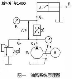 如圖一,該系統(tǒng)采用定量泵供油,油泵轉(zhuǎn)速n及油泵排量Vb都不可調(diào),其油路中的各流量及壓力分別為: