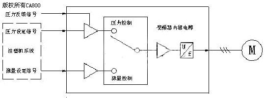 變頻器控制系統(tǒng)配備一塊智能轉(zhuǎn)換卡,變頻器將通過壓力傳感器實時監(jiān)控到這一壓力變化,并與塑機的壓力設(shè)定值做比較。當它們差值很小時,變頻器的智能轉(zhuǎn)換卡會及時將變頻器切換到壓力控制狀態(tài)。,啟動PID控制并通過PID功能保持系統(tǒng)壓力恒定。此時,變頻器的輸出頻率將與該壓力差值成正比。因差值很小,變頻器的輸出頻率及電機轉(zhuǎn)速將迅速降低,油泵僅維持很小的流量輸出,以彌補油路中的各種泄漏損失。