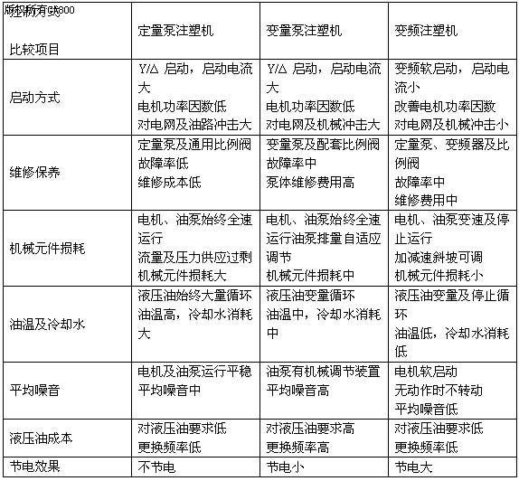 從我公司的在東莞某塑膠廠一些的變量泵塑機節(jié)能改造實例來看,對鎖模力120噸的臥式變量泵塑機進行變頻節(jié)能改造仍有20%的節(jié)電率。由此可見,變頻注塑機的節(jié)電率要高于變量泵注塑機,并對維護保養(yǎng)分析如下: