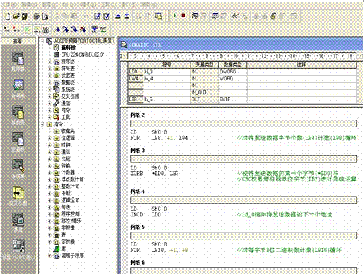 2.接收指令RCV緩沖區(qū) VB200 //rcv指令要接收的字節(jié)個數(shù) VB201 //變頻器地址(01) VB202 //modbus功能碼(06/03) VB203 //變頻器被寫地址高位/被讀數(shù)據(jù)字節(jié)個數(shù)高位 VB204 //變頻器被寫地址低位/被讀數(shù)據(jù)字節(jié)個數(shù)低位 VB205 //被寫數(shù)據(jù)高位/被讀數(shù)據(jù)高位 VB206 //被寫數(shù)據(jù)低位/被讀數(shù)據(jù)低位 VB207 //被接收數(shù)據(jù)CRC低位 VB208 //被接收數(shù)據(jù)CRC高位 VB217 //被接收數(shù)據(jù)CRC驗算低位 VB218 //被接收數(shù)據(jù)CRC驗算高位