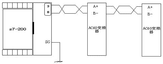 三、S7-200PLC與n臺變頻器的連接圖(單對子布線)