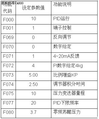 常見大中型空壓機(jī)為螺桿式或活塞式壓縮機(jī)。工作時(shí)由一臺(tái)電動(dòng)機(jī)帶動(dòng)螺桿或活塞向氣罐充氣,當(dāng)氣罐壓力升至設(shè)定的最高壓力時(shí)離合片動(dòng)作,電機(jī)自動(dòng)卸載,電機(jī)空轉(zhuǎn),螺桿或活塞停止壓縮空氣。壓縮機(jī)的這種工作方式帶來了下列問題: 1、氣壓最高時(shí)電機(jī)自動(dòng)卸載空轉(zhuǎn)造成電能的大量的浪費(fèi)。 2、出口壓力隨著用氣量的大小而出現(xiàn)正弦波式的變化,影響氣動(dòng)設(shè)備的性能及工作效率。 3、工作時(shí),壓縮機(jī)頻繁的加卸載使設(shè)備的檢修時(shí)間加長(zhǎng),使用壽命縮短。 4、大功率壓縮機(jī)電機(jī)的頻繁加卸載造成對(duì)電網(wǎng)的沖擊。 根據(jù)以上空壓機(jī)的工作特點(diǎn),我們可用空壓機(jī)恒壓變頻拖動(dòng)系統(tǒng)對(duì)改造。 二、系統(tǒng)配置及性能: 本系統(tǒng)選用SY6000 -75G型變頻器,該型變頻器性能優(yōu)良,可靠性高,內(nèi)置PID調(diào)節(jié)器,各項(xiàng)參數(shù)可靈活設(shè)置,能很好地滿足控制要求。壓力傳感器選用hxyb131-8型,該型傳感器安裝簡(jiǎn)便,線性好,信號(hào)變送精度高??刂圃韴D如下: 三、系統(tǒng)功能描述 該系統(tǒng)以壓力為控制對(duì)象,壓力值由變頻器數(shù)字設(shè)定,可根據(jù)用氣設(shè)備的實(shí)際需要,在空壓機(jī)的最高允許工作壓力內(nèi)自由設(shè)定,調(diào)整便捷。壓力傳感器對(duì)供氣管網(wǎng)壓力實(shí)時(shí)檢測(cè),并通過變送器轉(zhuǎn)換,輸出標(biāo)準(zhǔn)的4-20mA的信號(hào),送至變頻器反饋,在變頻器內(nèi)進(jìn)行PID閉環(huán)控制,根據(jù)系統(tǒng)用氣量的要求實(shí)時(shí)調(diào)整變頻器的輸出,從而實(shí)時(shí)調(diào)整壓縮機(jī)電機(jī)的轉(zhuǎn)速,保證管網(wǎng)壓力的恒定。 四、用戶受益 采用該系統(tǒng)改造后,壓縮機(jī)組的供氣量與系統(tǒng)所需量動(dòng)態(tài)匹配,壓縮機(jī)電機(jī)轉(zhuǎn)速會(huì)隨著系統(tǒng)用氣量的不同而進(jìn)行調(diào)節(jié),避免了電機(jī)空轉(zhuǎn)以及頻繁的加卸載所帶來的能量損耗,電機(jī)的輸入功率大大降低,節(jié)電效果顯著。對(duì)于對(duì)空氣機(jī)來說,供氣量Q與轉(zhuǎn)速N成正比,氣壓F與轉(zhuǎn)速N的二次方成正比,而軸功率與轉(zhuǎn)速N的三次方成正比,見下表: 一般來說,對(duì)于連續(xù)用氣的空壓機(jī)系統(tǒng),隨用氣量的變化,電動(dòng)機(jī)運(yùn)行頻率在25-50HZ之間動(dòng)態(tài)調(diào)節(jié),系統(tǒng)的節(jié)電率可達(dá)20%-40%。 另外系統(tǒng)改造所帶來的間接效益也不可低估。首先,壓縮機(jī)電動(dòng)機(jī)實(shí)現(xiàn)了軟啟停,軟加減速,對(duì)電網(wǎng)的沖擊大大減少;其次壓縮機(jī)氣缸內(nèi)氣閥片不再反復(fù)地開啟和關(guān)閉,增加了設(shè)備的壽命,減少了系統(tǒng)維護(hù)時(shí)間;再次系統(tǒng)管網(wǎng)氣壓穩(wěn)定,提高了氣動(dòng)設(shè)備的效率。 五、變頻器主要參數(shù)設(shè)定: 六、注意事項(xiàng): 1、各品牌的空壓機(jī)潤(rùn)滑及冷卻方式的不盡相同,故空壓機(jī)工作的下限頻率應(yīng)根據(jù)實(shí)際情況進(jìn)行設(shè)定。 2、由于空壓機(jī)連續(xù)工作時(shí)本身會(huì)散發(fā)大量的熱量,因此應(yīng)注意變頻器箱體的溫度不要超限,確保變頻器工作場(chǎng)所的通風(fēng)。 3、當(dāng)儲(chǔ)氣罐內(nèi)氣壓較高時(shí),啟動(dòng)變頻器時(shí)會(huì)引起堵轉(zhuǎn)過流,因此不要在儲(chǔ)氣罐內(nèi)壓力較高時(shí)啟動(dòng)變頻器,應(yīng)卸放儲(chǔ)氣罐內(nèi)的空氣后啟動(dòng)。也可在空壓機(jī)出氣口加裝單向閥。 |