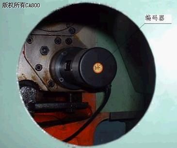 機(jī)床能否進(jìn)行螺紋加工是主軸部分?jǐn)?shù)控化改造的另一重要部分,傳統(tǒng)車床加工螺紋時往往是通過掛輪組來完成,加工不同的螺紋則需不同的掛輪組,操作起來十分麻煩。改造時如圖2,我們通常在主軸末端或掛輪架處增裝一光電編碼器,其轉(zhuǎn)速與主軸轉(zhuǎn)速一致,主軸轉(zhuǎn)一周,光電碼盤轉(zhuǎn)一轉(zhuǎn),通過反饋給系統(tǒng)控制進(jìn)給軸與主軸的同步性,從而加工出理想螺距的螺紋。根據(jù)其編碼方式的不同,光電碼盤可分為增量式光電碼盤和絕對式光電碼盤,目前國內(nèi)常用的為增量式光電碼盤。根據(jù)光電碼盤上刻線條數(shù)可分為1024線、2048線等,我們常用的為1024線即可滿足要求。