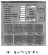 微軟的基礎(chǔ)類(lèi)庫(kù)MFC是VC++程序的設(shè)計(jì)一個(gè)重要資源,在ARX程序中使用MFC的最明顯的優(yōu)點(diǎn)是可以充分利用VC++開(kāi)發(fā)環(huán)境提供的各種類(lèi)資源和控件資源,實(shí)現(xiàn)程序界面的可視化設(shè)計(jì),大大提高程序開(kāi)發(fā)效率。利用MFC開(kāi)發(fā)環(huán)境開(kāi)發(fā)各個(gè)零部件的人機(jī)交互的對(duì)話框界面(如圖3所示),用戶(hù)可以在對(duì)話框界面中輸入或修改設(shè)計(jì)參數(shù),實(shí)現(xiàn)三維實(shí)體建模;通過(guò)修改設(shè)計(jì)參數(shù),可以完成換熱設(shè)備中非標(biāo)準(zhǔn)零部件的三維造型。