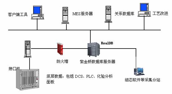 而在由下而上或由上而下的數(shù)據(jù)傳輸過程中,缺少一個能夠?qū)Υ罅繉崟r數(shù)據(jù)進行快速傳輸?shù)闹袠?,實時數(shù)據(jù)庫軟件的出現(xiàn),在MES層與底層數(shù)采之間架起的一座橋梁。一方面,實時數(shù)據(jù)庫可以存儲組態(tài)軟件的采集數(shù)據(jù)、DCS、儀表的狀態(tài)數(shù)據(jù),以實時監(jiān)控底層設(shè)備的運行狀態(tài),再經(jīng)過分析、計算與處理,進行故障報警等;另一方面,實時數(shù)據(jù)庫可以用來為MES層提供大規(guī)模的實時數(shù)據(jù),以便MES有效的對實時數(shù)據(jù)進行處理、分析、模型計算等,方便、可靠地將控制系統(tǒng)與信息系統(tǒng)整合在一起。