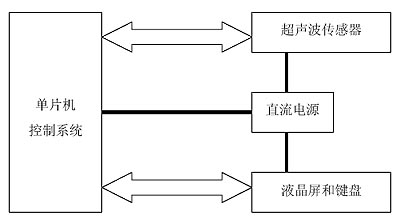 硬件系統(tǒng)包括:?jiǎn)纹瑱C(jī)控制系統(tǒng)、超聲波傳感器、鍵盤和顯示電路以及直流電源部分。其組成結(jié)構(gòu)見(jiàn)圖2。