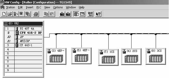 本項(xiàng)目中,有三座加熱爐屬改造、一座新建。共使用了共9套S7-400型PLC。型號(hào)為:6ES7416-2XK02-0AB0。每座加熱爐使用兩套PLC分別作為傳動(dòng)控制、及燃燒控制,另有一套作為公用輔助設(shè)備的傳動(dòng)控制,取代原有的DPU及MAC系統(tǒng)。