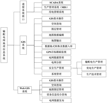 ![]() 圖一 輸配電網(wǎng)地理信息系統(tǒng)功能框架示意圖