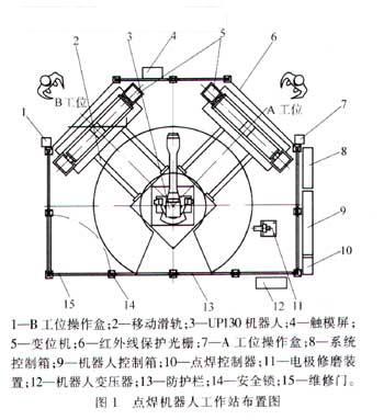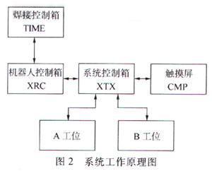 c焊接控制箱是控制點焊鉗的點焊、空打、加壓、大開、小開等動作,并要保持與機器人控制箱的信息交流;機器人控制箱控制機器人動作、工件焊接;系統(tǒng)控制箱控制焊接起始與終止、夾具的動作、變位機的到位及鎖緊、防護門的安全鎖、操作按鈕及急停按鈕等,并協(xié)調(diào)各動作及安全互鎖;操作方式采用觸摸屏控制,觸摸屏與可編程控制器之間的信息交流采用通訊方式,這樣大大提高了系統(tǒng)的可靠性與柔性。