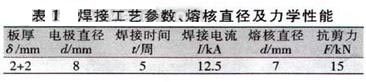 經(jīng)焊接工藝試驗,獲得點焊機器人焊接工藝參數(shù),見表1。按表中所給的參數(shù)焊接的多個試件,焊點經(jīng)外觀檢驗及力學性能試驗,各項指標均滿足設(shè)計要求。