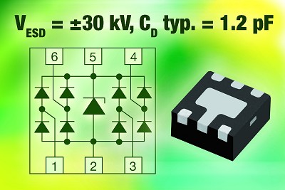 Vishay的該新型器件在 5V 工作電壓時(shí)具有 1.2pF 的低電容以及不足 0.1μA 的較低最大漏電流。該陣列可提供 7V 的典型擊穿電壓(在 1mA 時(shí)),在 13A 時(shí)可提供 22V 的最大嵌位電壓。