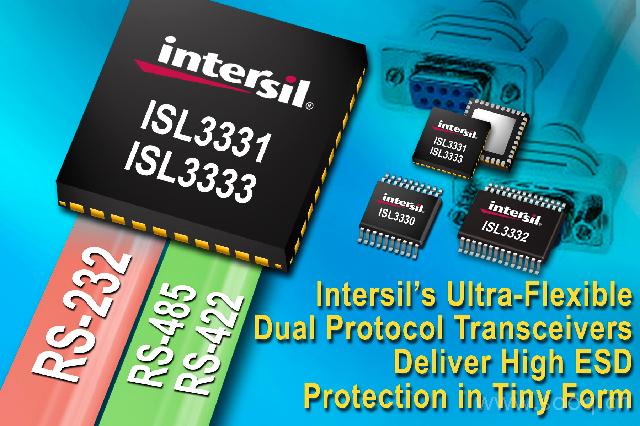 Intersil公司為市場提供了RS-232、RS-485/RS-422和多協(xié)議收發(fā)器。RS-232系列可在3.3V和5V電壓下操作,具有發(fā)送器和接收器的許多種組合配置,遵循IEC61000 ESD保護(hù)標(biāo)準(zhǔn)。RS-485系列采用3.3V或5V電源,支持全雙工/半雙工模式,有許多速度等級可供選擇,提供15kV HBM ESD保護(hù)。欲了解更多有關(guān)Intersil公司接口產(chǎn)品的信息,請登錄。