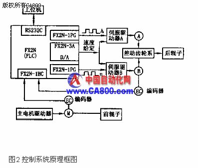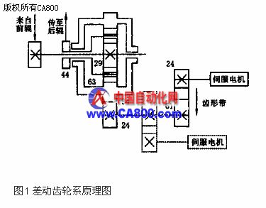提高伺服控制系統(tǒng)速度的變化率可以提高紡織細(xì)紗機(jī)的生產(chǎn)效率。用一臺(tái)PLC控制兩組伺服驅(qū)動(dòng)電機(jī),兩臺(tái)電機(jī)啟停時(shí)間錯(cuò)開(kāi),通過(guò)機(jī)械裝置合成可使速度變化率達(dá)500次/min;系統(tǒng)采用速度反饋控制,利用RS232與上位機(jī)通訊以實(shí)現(xiàn)參數(shù)的設(shè)置和監(jiān)控。詳細(xì)介紹了基于PLC紡織細(xì)紗機(jī)伺服控制系統(tǒng)的硬件原理和軟件設(shè)計(jì)方法。實(shí)際運(yùn)行結(jié)果表明:該系統(tǒng)設(shè)計(jì)合理,工作可靠,滿足了紡織細(xì)紗機(jī)生產(chǎn)的需要。 一、引言 細(xì)紗機(jī)是紡織廠的專用設(shè)備,具有前后兩個(gè)輥?zhàn)印S捎谇懊孑佔(zhàn)拥乃俣缺群竺孑佔(zhàn)涌?,從前輥?zhàn)舆M(jìn)去的粗紗在兩個(gè)輥?zhàn)又g得到拉延,從后面輥?zhàn)虞敵龅募喚妥兗?xì)了。花式紗不是均勻粗細(xì),而是粗細(xì)相間。要得到粗細(xì)相間的紗,只需讓后輥?zhàn)拥霓D(zhuǎn)速時(shí)快時(shí)慢即可。本文設(shè)計(jì)了一套機(jī)械差動(dòng)齒輪減速箱,減速箱的兩個(gè)輸入:一是前輥?zhàn)油ㄟ^(guò)減速齒輪傳動(dòng)后輥?zhàn)拥倪\(yùn)動(dòng);另一是一臺(tái)永磁同步伺服電機(jī),通過(guò)控制系統(tǒng)使其頻繁啟??刂啤D壳坝来磐诫姍C(jī)控制系統(tǒng)最大啟停次數(shù)可達(dá)280次/min。差動(dòng)齒輪系的輸出端接后輥?zhàn)?。如伺服電機(jī)不轉(zhuǎn),后輥?zhàn)觿蛩傩D(zhuǎn),紡出的是普通紗,如伺服電機(jī)頻繁啟停,經(jīng)差動(dòng)輪系合成后,后輥?zhàn)铀俣葧r(shí)快時(shí)慢,紡出來(lái)的就是花式紗了。根據(jù)生產(chǎn)的需要,需要提高細(xì)紗機(jī)的車速,以提高紡紗的生產(chǎn)率,為保持原來(lái)花式細(xì)紗粗細(xì)相間的節(jié)距,后輥?zhàn)愚D(zhuǎn)速變化率需要提高到500次/min,要求伺服電機(jī)啟停率也要500次/min。目前,國(guó)內(nèi)外生產(chǎn)的伺服驅(qū)動(dòng)系統(tǒng)難以滿足要求。 作者設(shè)計(jì)了一套驅(qū)動(dòng)控制系統(tǒng),采用兩臺(tái)永磁同步電機(jī)伺服系統(tǒng),每臺(tái)電機(jī)啟停250次/min,兩臺(tái)電機(jī)啟停時(shí)間錯(cuò)開(kāi),通過(guò)機(jī)械裝置將其合成為500次/min。 二、差動(dòng)齒輪系的設(shè)計(jì) 差動(dòng)齒輪系的工作原理如圖1所示,來(lái)自于前輥?zhàn)拥霓D(zhuǎn)速經(jīng)過(guò)齒輪減速后作為差動(dòng)齒輪系的一個(gè)輸入,另一個(gè)輸入由兩臺(tái)伺服電動(dòng)機(jī)通過(guò)機(jī)械合成而成,能實(shí)現(xiàn)啟停500次/min。從圖可見(jiàn),若兩臺(tái)伺服電動(dòng)機(jī)不轉(zhuǎn),差動(dòng)齒輪系輸出到后輥?zhàn)拥臑橐粋€(gè)低于前輥?zhàn)拥木鶆蛩俣?,此時(shí)細(xì)紡機(jī)紡出為普通紗。若兩臺(tái)伺服電機(jī)均啟停250次/min,且啟停時(shí)間錯(cuò)開(kāi),通過(guò)機(jī)械合成后為啟停500次/min,此時(shí)差動(dòng)輪系輸出到后輥?zhàn)拥淖兓俣葹?00次/min,細(xì)紡機(jī)紡出為花式紗。 ![]() 三、控制系統(tǒng)硬件的設(shè)計(jì) 在紡紗過(guò)程中需要不斷地改變紗的粗細(xì)、紗的長(zhǎng)度和節(jié)距3個(gè)參數(shù),要求伺服電機(jī)不斷改變啟停周期和速度,每種紗常有300多種變化組合,參數(shù)要求方便進(jìn)行調(diào)整,而且工作環(huán)境較惡劣,可靠性要求高。根據(jù)以上要求本文選擇Mitsubishi的FX2N系列可編程控制器,控制系統(tǒng)的原理框圖如圖2所示。 ![]() 伺服系統(tǒng)電機(jī)采用Mitsubishi的低慣量永磁同步電機(jī),其參數(shù)為12Nm,22A,2.84KW,3000r/min。兩套伺服系統(tǒng)的速度控制號(hào)由PLC模擬量I/O模塊FX2N-3A 輸出控制,其模擬電壓為0~10V。A、B兩套伺服系統(tǒng)的啟??刂菩盘?hào)。 |