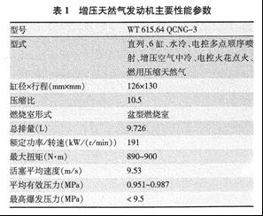 試驗機型是以濰坊柴油機廠生產(chǎn)的WT615型柴油機為基礎研制的電控增壓單一燃料壓縮天然氣發(fā)動機。該天然氣發(fā)動機主要性能指標和結構參數(shù)見表1。