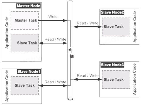 LIN信息是以報(bào)文的形式傳送的。報(bào)文傳輸是由報(bào)文幀的格式形成和控制的。報(bào)文幀由主機(jī)任務(wù)向從機(jī)任務(wù)傳送同步和標(biāo)識(shí)符信息,并將一個(gè)從機(jī)任務(wù)的信息傳送到所有其它從機(jī)任務(wù)。主機(jī)任務(wù)位于主機(jī)節(jié)點(diǎn)內(nèi)部,它負(fù)責(zé)報(bào)文的進(jìn)度表、發(fā)送報(bào)文頭(HEADER)。從機(jī)任務(wù)位于所有的(即主機(jī)和從機(jī))節(jié)點(diǎn)中,其中一個(gè)(主機(jī)節(jié)點(diǎn)或從機(jī)節(jié)點(diǎn))發(fā)送報(bào)文的響應(yīng)(RESPONSE)。