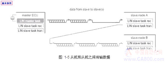 LIN從機(jī)向主機(jī)傳輸數(shù)據(jù)示如圖 1-3所示,整個(gè)過程在主機(jī)的協(xié)調(diào)下進(jìn)行。