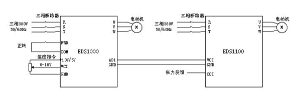 三、易能EDS1100拉絲機專用變頻器在拉絲機上的應用和設置改造接線圖