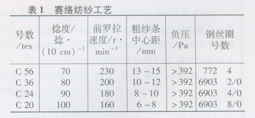 2相關(guān)工藝參數(shù)的設(shè)計(jì) 2.1 牽伸倍數(shù) 賽絡(luò)紡重量牽伸的計(jì)算方法與傳統(tǒng)計(jì)算方法相同。在選擇機(jī)械牽伸時(shí),因兩根喂人粗紗中間有一定間距,張力牽伸較大,牽伸效率應(yīng)根據(jù)不同的原料進(jìn)行選擇。 2.2捻系數(shù) 選擇賽絡(luò)紗捻系數(shù)時(shí),應(yīng)高于傳統(tǒng)環(huán)錠紗捻系數(shù)的15%~20%。因賽絡(luò)紡紗單根須條上的捻度較低,纖維間抱合力差,易出現(xiàn)單根斷頭現(xiàn)象。因此,設(shè)計(jì)賽絡(luò)紡紗捻系數(shù)時(shí)應(yīng)偏大,但選擇過大(接近臨界捻度),會(huì)造成成紗手感僵硬,強(qiáng)力降低,所以要求一般不超過同類產(chǎn)品捻系數(shù)的20%。 2.3粗紗條間距 喂人粗紗條中心距大小直接關(guān)系到成紗效果和設(shè)計(jì)捻度向兩須條的傳遞,影響到斷頭根數(shù),因此是一個(gè)關(guān)鍵參數(shù)。當(dāng)設(shè)計(jì)捻度一定時(shí),粗紗條中心距大,賽絡(luò)紡紗效果好。但間距過大,捻度向單根須條傳遞減少,易出現(xiàn)單根須條斷頭。在一落紗中葉子板距羅拉握持點(diǎn)距離由大逐漸變小,則賽絡(luò)紡紗中須條匯聚點(diǎn)距前羅拉距離也逐漸變小,匯聚點(diǎn)處兩須條夾角增大,影響捻度傳遞效果。因此,選擇好粗紗條間距是關(guān)鍵,使用可凋式雙喂人裝置可以有效解決這一問題。 2.4吸棉口負(fù)壓 細(xì)紗機(jī)車頭吸棉笛管吸棉口負(fù)壓應(yīng)大于392Pa,單紡助接器借助于吸棉口的負(fù)壓,使前羅拉鉗口處的須條吸入吸棉口時(shí)運(yùn)動(dòng)軌跡改變,從前鉗口經(jīng)導(dǎo)須臺(tái)后到吸棉口。如果吸棉口負(fù)壓小,導(dǎo)須臺(tái)尾端吸人點(diǎn)對須條的吸力可能小于導(dǎo)須臺(tái)面對須條的摩擦力,纖維運(yùn)動(dòng)受阻,發(fā)生堵塞現(xiàn)象。實(shí)踐表明,吸棉口負(fù)壓大于392 Pa時(shí)有利于斷裂須條的收集。 2.5鋼絲圈的選擇 由于賽絡(luò)紗的設(shè)計(jì)捻系數(shù)比同號(hào)普梳環(huán)錠紗大20%,左右,因此鋼絲圈應(yīng)偏重掌握1號(hào)~2號(hào)。 2.6常用工藝配置 賽絡(luò)紡紗常用工藝見表1。 ![]() 3操作方法 安裝賽絡(luò)紡控制裝置后,傳統(tǒng)的操作方法有所改變。 (1)粗紗斷裂后接頭。當(dāng)粗紗單紡卡斷器將斷裂粗紗控制后,在兩根粗紗全部斷裂引頭時(shí),將兩根粗紗直接喂入雙喂人裝置,進(jìn)入牽伸區(qū),在單紡斷頭助接器處接頭,使其先正常紡紗以節(jié)省時(shí)問,然后再將兩根粗紗分別放入定位圈和探桿吊環(huán)中。在正常紡紗過程中換粗紗包接頭時(shí),應(yīng)先將相鄰的另一根粗紗從定位圈中取出后再包接粗紗,等包接頭后的粗紗拉緊時(shí)再將兩根粗紗分別放入定位圈中。 (2)細(xì)紗接頭。紡紗過程中如果羅拉鉗口處兩根須條全部斷裂,應(yīng)取紗管,觀察是否卷繞有單股紗,有則將其退繞至正常紗處。拔管、掛鋼圈動(dòng)作與傳統(tǒng)動(dòng)作一致,卡頭時(shí)所留紗稍長,將食指指肚靠近單紡斷頭助接器的集棉口處并向上微挑,讓紗頭與集棉口的纖維須條相觸,然后迅速將手松開。不能將紗頭靠近羅拉鉗口處進(jìn)行接頭。 4成紗質(zhì)量 在安裝賽絡(luò)紡單紗控制裝置后,賽絡(luò)紡紗生產(chǎn)正常,控制效果較好,紡制的賽絡(luò)紗成紗質(zhì)量較好,粗節(jié)、細(xì)節(jié)、棉結(jié)減少,條干改善,成紗毛羽減少。成紗質(zhì)量見表2。 ![]() 5 結(jié)束語 紡紗實(shí)踐表明,對細(xì)紗機(jī)的傳動(dòng)稍加改動(dòng)和調(diào)整后,安裝使用賽絡(luò)紡控制裝置是可行的,對賽絡(luò)紡單紗能進(jìn)行有效控制。由于賽絡(luò)紡單紡助接器對吸棉負(fù)壓的要求較高,有些采用低速吸棉風(fēng)機(jī)的細(xì)紗機(jī)(電機(jī)功率1.5 kW以下,風(fēng)葉直徑370 mm以下)就難以直接使用賽絡(luò)紡控制裝置,但經(jīng)改造后仍能配用。使用賽絡(luò)紡控制裝置后所生產(chǎn)的賽絡(luò)紗質(zhì)量有保證,且賽絡(luò)紗本身具有獨(dú)特的風(fēng)格,能廣泛應(yīng)用于免上漿經(jīng)紗、起絨用紗及針織用紗等,開發(fā)出新穎獨(dú)特的面料。 |