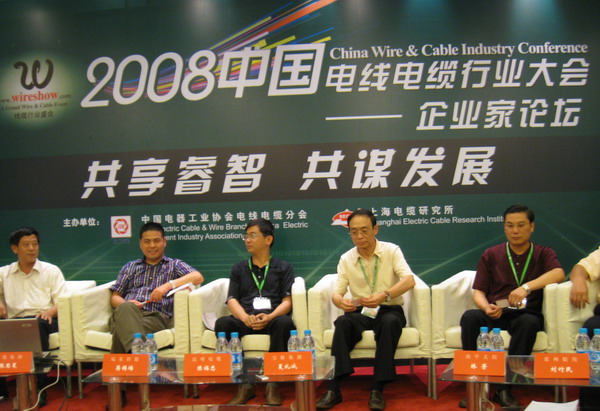 9月22日,由中國(guó)電器工業(yè)協(xié)會(huì)電線電纜分會(huì)和上海電纜研究所共同主辦的線纜行業(yè)頂級(jí)盛會(huì)“2008中國(guó)電線電纜行業(yè)大會(huì)”在上海博龍國(guó)際大酒店隆重召開,來自全國(guó)電纜、光纜、設(shè)備、材料及相關(guān)行業(yè)的專家學(xué)者、企業(yè)代表等400余人匯聚一堂,交流探討中國(guó)電線電纜行業(yè)發(fā)展之計(jì),共同促進(jìn)行業(yè)理性、穩(wěn)步發(fā)展。遠(yuǎn)東控股集團(tuán)董事局主席蔣錫培應(yīng)邀出席了此次盛會(huì),并在下午舉行的“企業(yè)家圓桌論壇”上作題為《和諧發(fā)展、共創(chuàng)線纜行業(yè)美好明天》的精彩演講。