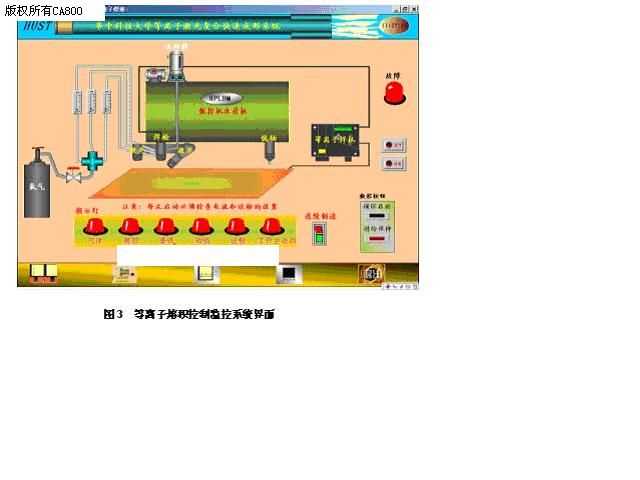 基于組態(tài)軟件的等離子熔積控制系統(tǒng)硬件由威達(dá)公司的P32C32 I/O卡實(shí)現(xiàn)對(duì)送水、送氣等過(guò)程控制;威達(dá)的A626 D/A卡實(shí)現(xiàn)對(duì)送粉、熔積時(shí)的電流和電壓等的控制;研華PCL-818L A/D卡實(shí)現(xiàn)對(duì)現(xiàn)場(chǎng)重要數(shù)據(jù)采集;凌華公司的圖像處理卡和攝像頭實(shí)現(xiàn)對(duì)實(shí)時(shí)熔積熔池的形貌跟蹤。在現(xiàn)場(chǎng)工控機(jī)上用組態(tài)王軟件開(kāi)發(fā)圖形界面,如控制系統(tǒng)總貌圖、電流和電壓波形顯示圖以及參數(shù)設(shè)定圖、報(bào)警圖和報(bào)表等,實(shí)現(xiàn)對(duì)熔積控制系統(tǒng)的監(jiān)控(見(jiàn)圖3)。系統(tǒng)要完成的功能主要是對(duì)等離子熔積過(guò)程的運(yùn)動(dòng)、送粉、電流等的檢測(cè)和控制達(dá)到按指定要求生產(chǎn)出滿意的產(chǎn)品。