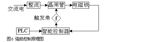 2. 強(qiáng)勵優(yōu)化控制原理。 根據(jù)該階段的優(yōu)化控制目標(biāo),計算出控制器的各個參數(shù)。其控制原理如圖6。利用斜坡函數(shù)的功能,可以很好的對電流的上升曲線進(jìn)行控制,控制器內(nèi)部含有智能PID 控制模塊,對于電磁鐵隨內(nèi)外環(huán)境所產(chǎn)生的電流變化,可以通過PID 控制功能進(jìn)行電流的優(yōu)化控制。