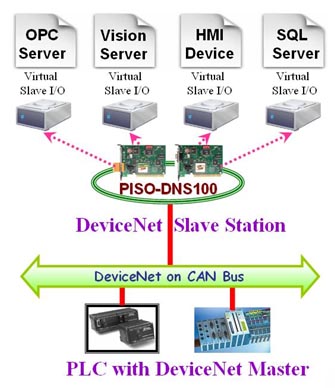 DeviceNet 是一個簡單的而且開放式的網(wǎng)絡(luò)解決方案,能有效地降低配線的成本及節(jié)省安裝設(shè)備的時間。泓格公司于目前推出一款DeviceNet Multi-Slave PCI 板卡PISO-DNS100,為使用者提供PC-based的DeviceNet Slave解決方案,讓PC變成一部虛擬的DeviceNet Slave工作站。遠(yuǎn)程的DeviceNet Master可以透過DeviceNet網(wǎng)絡(luò)與PC交換數(shù)據(jù)。PISO-DNS100板卡內(nèi)含186 80M Hz的CPU,可獨(dú)立運(yùn)作DeviceNet Slave韌體,并采用DPRAM與PCI bus溝通。不但能大大地降低控制系統(tǒng)的負(fù)擔(dān)更能提供有效率的控制方式,并提供多功能的工具與windows函式庫,幫助客戶快速建立虛擬DeviceNet Slave 工作站。泓格公司同時也提供多樣化的DeviceNet Master PCI 板卡??蓞⒖枷铝芯W(wǎng)頁 :