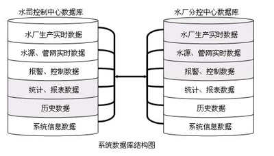 自來水SCADA系統(tǒng)數(shù)據(jù)以水司控制中心數(shù)據(jù)庫和水廠分控中心數(shù)據(jù)庫為核心,兩個(gè)數(shù)據(jù)庫結(jié)構(gòu)類似,只是側(cè)重點(diǎn)不同。數(shù)據(jù)庫結(jié)構(gòu)見圖: