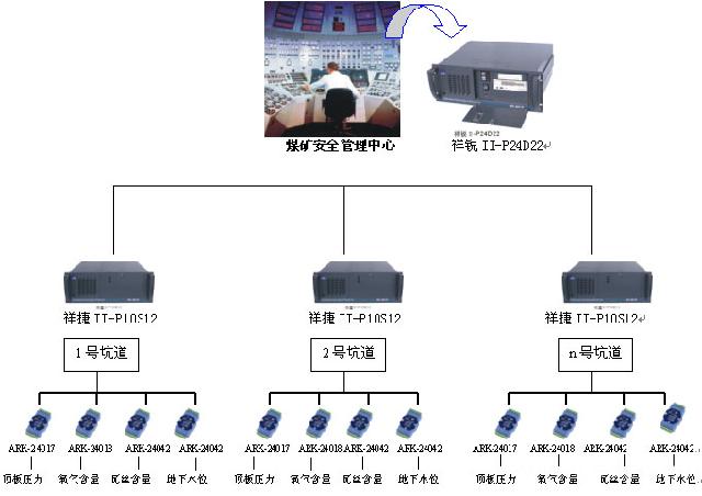 能夠將礦井,坑道里面的一些影響煤碳生產安全外來參數,包括空氣的瓦絲含量、井下水位、氧氣含量、頂板壓力等外來參數實時的采集到煤礦管理中心,在管理中心服務器得到這些數據后,通過軟件對采集來的這些數據進行實時的分析,來測評這些數據是否合格,從而來確定礦井,坑道生產條件是否安全,從而為安全生產提供有利的保障。要求使用研祥產品搭建完整的采集,通信,軟件處理,報警系統(tǒng)。