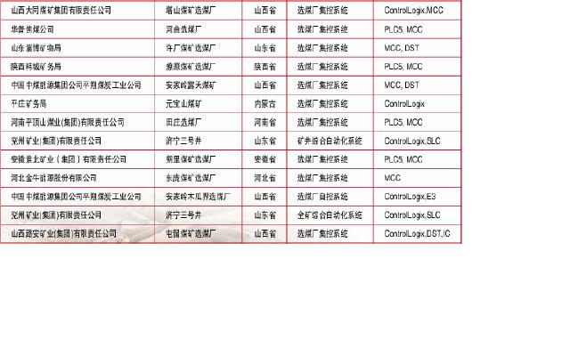 4. 羅克韋爾在中國煤炭行業(yè)部分用戶