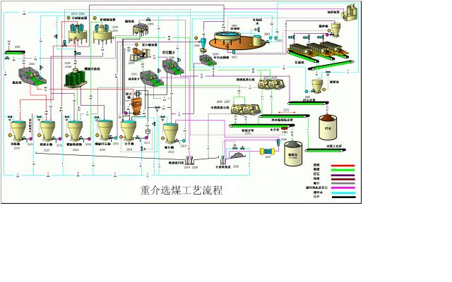 重介選煤系統(tǒng)重介選煤是用密度介于精煤與矸石(或中煤)之間的液體作為介質(zhì)進(jìn)行分選的方法。密度低于介質(zhì)的精煤漂浮,而密度高于介質(zhì)的矸石或中煤則下沉。重介選煤能達(dá)到很高的分選精度,可以獲得高的分選效率。