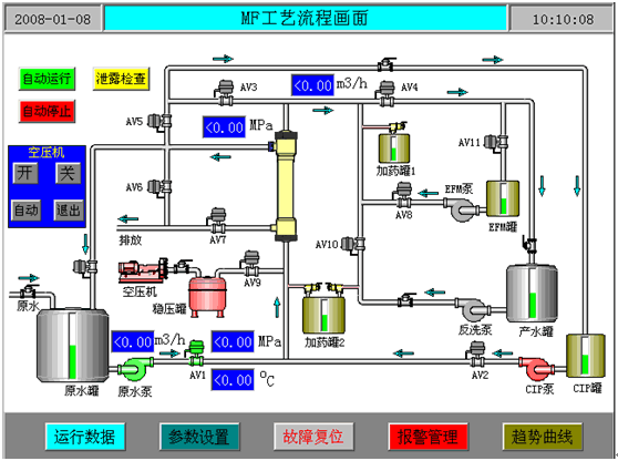 3)、各設(shè)備的運(yùn)行、故障狀態(tài)信號(hào)及溫度、壓力、流量和液位信號(hào)的采集及各種泵、空壓機(jī)和氣動(dòng)閥的控制。