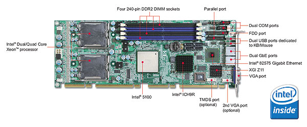 提供相對高性能的顯示圖像能力, XGI Z11能提供服務(wù)器等級的2D視頻能力,提供彈性設(shè)計能將兩個PCI Express 8x 的頻寬結(jié)合成一個PCI Express 16的插槽供高端顯卡使用.