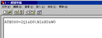 控制Modem的所有指令都以AT開始,最后以回車來執(zhí)行它們,因此稱其為AT指令。 AT指令前綴的兩個(gè)字符都應(yīng)以大寫或小寫(AT或at)輸入,Modem無法辨認(rèn)At或aT。 以上連接中所使用到的AT指令的含義: E0:命令字符串不回送。 Q0:返回命令執(zhí)行結(jié)果。Q1:不返回命令執(zhí)行結(jié)果。 V1:以字符形式返回命令執(zhí)行結(jié)果。 &C1:數(shù)據(jù)載波偵聽(DCD)信號(hào)將隨著遠(yuǎn)程調(diào)制解調(diào)器送來的數(shù)據(jù)載波變化而變化。 &D0:DTR永遠(yuǎn)保持在ON,調(diào)制解調(diào)器忽略DTR信號(hào)。 &K0:禁止數(shù)據(jù)流量控制。 &W0:將目前所作的參數(shù)存入調(diào)制解調(diào)器的第0組參數(shù)表。 \N2:選擇MNP可靠模式的數(shù)據(jù)鏈路。 S0=2:調(diào)制解調(diào)器接收到2次振鈴信號(hào)后自動(dòng)接聽。 &V:顯示當(dāng)前的調(diào)制解調(diào)器參數(shù)。 &F:恢復(fù)到出廠設(shè)置。