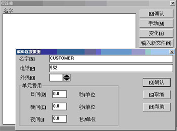 4. 在出現(xiàn)的“行連接”對(duì)話框中點(diǎn)擊“輸入新文件”,在隨后出現(xiàn)的“編輯連接數(shù)據(jù)”對(duì)話框中設(shè)置好“名字”和“電話”并確認(rèn)。