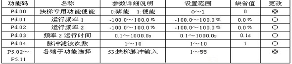 1、Pd.00:設(shè)置為1,啟動(dòng)扶梯專用功能;