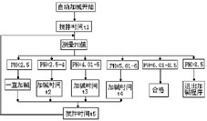 廢水中和處理的過程是,當處理池達到給定的水位時,啟動壓縮機,池中爆氣頭開始爆氣,進行攪拌,混合均勻后(時間長短可以設定),測量池中PH值。如果池中呈酸性,程序控制自動加堿使之中和,使PH值達到6~8.5之間的排放標準。如果PH值大于8.5時從貯水池抽酸性水或將處理池的堿性水抽一部分到貯水池,再從陽床進一部分酸性水,充分混合達到排放標準,啟動排放閥排放。圖2為自動加堿程序框圖。