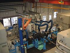 瑞典塞德特里耶的斯堪尼亞技術(shù)中心安裝了一個(gè)4-機(jī)試驗(yàn)臺(tái),用以確定卡車后橋傳動(dòng)的疲勞壽命、工作壽命和功能。該試驗(yàn)臺(tái)用于研究后橋傳動(dòng),特別是有、無(wú)雙軸的重載車輛的后橋傳動(dòng)。
