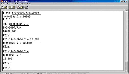 驅動器OPEN后,我們可以修改驅動器中參數。例如我們超級終端讀寫速度命令值 (S-0-0036)如下: