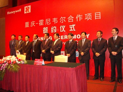 (2008年9月26日,重慶) 今天,霍尼韋爾在希爾頓酒店分別和重慶燃?xì)猓瘓F(tuán))有限公司簽署了燃?xì)庹{(diào)度中心節(jié)能改造合同,以及和重慶長安汽車股份有限公司簽署了發(fā)動(dòng)機(jī)增壓項(xiàng)目合作意向備忘錄。重慶市市長王鴻舉和前來重慶參加市長國際經(jīng)濟(jì)顧問團(tuán)年會(huì)的霍尼韋爾全球副總裁兼中國與印度首席執(zhí)行官沈達(dá)理出席并見證了簽約儀式。一系列的簽約將霍尼韋爾和重慶市在節(jié)能減排領(lǐng)域的合作又推向了新的里程碑?!肮?jié)能減排是一件‘功在當(dāng)代,利在千秋’的事情,希望我們的共同努力不僅有利于當(dāng)今社會(huì)的持續(xù)繁榮,更將為我們的子孫后代,為地球家園營造綠色的未來?!鄙蜻_(dá)理表示。