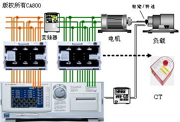 此測試電路是一個完整的變頻器測試方案,包括三相電源輸入、三相輸出、驅(qū)動的電機的機械輸出(轉(zhuǎn)速、扭矩)等。如果被測的變頻器功率較大,輸入、輸出電流超過了儀器的量程,就需要在電流的測量回路里接入CT(電流互感器),把被測電流轉(zhuǎn)變成儀器的測量量程內(nèi)。