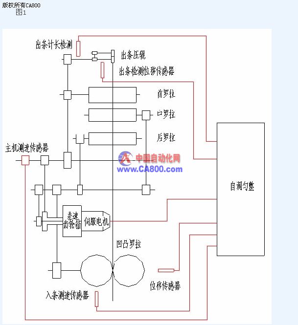 該機(jī)構(gòu)由差速齒輪箱、伺服電機(jī)及伺服控制器組成。從圖1中可以看出,輸入差速齒輪箱的速度是恒定的,而伺服電機(jī)的轉(zhuǎn)速是變化的,這樣使得差速齒輪箱的輸出轉(zhuǎn)速發(fā)生變化,從而改變了中羅拉以后的傳動機(jī)構(gòu)的轉(zhuǎn)速,也就改變了主牽伸區(qū)的牽伸倍數(shù)。以達(dá)到對棉條勻整的目的。這里重要的是伺服系統(tǒng)的精度、響應(yīng)時間、動態(tài)特性等參數(shù)。對伺服系統(tǒng)的要求是:慣性小、轉(zhuǎn)矩大、免維護(hù)、響應(yīng)速度快等。本裝置選用的是日本SANYO公司的交流伺服系統(tǒng),精度高,響應(yīng)速度快,動態(tài)性能好。滿足了系統(tǒng)的使用要求。